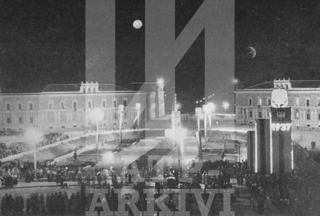 Tirana në mbrëmje gjatë festimeve të 25 vjetorit të Pavarësisë së Shqipërisë, datë 28.11.1937 . | Tirana in the evening during the celebrations of the 25th anniversary of the Independence of Albania, date 28.11.1937 .