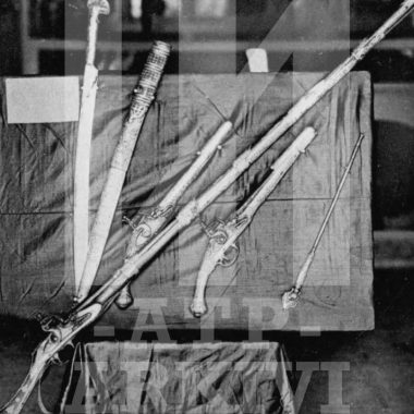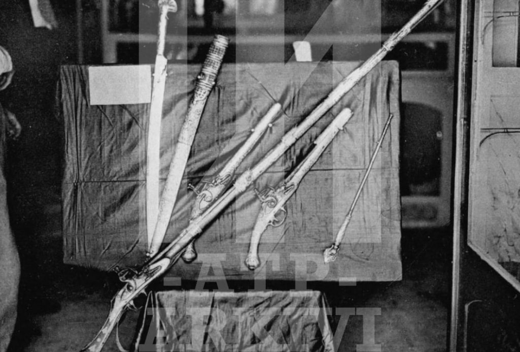 Armë antike shqiptare të ekspozuara. | Albanian antique weapons on display.